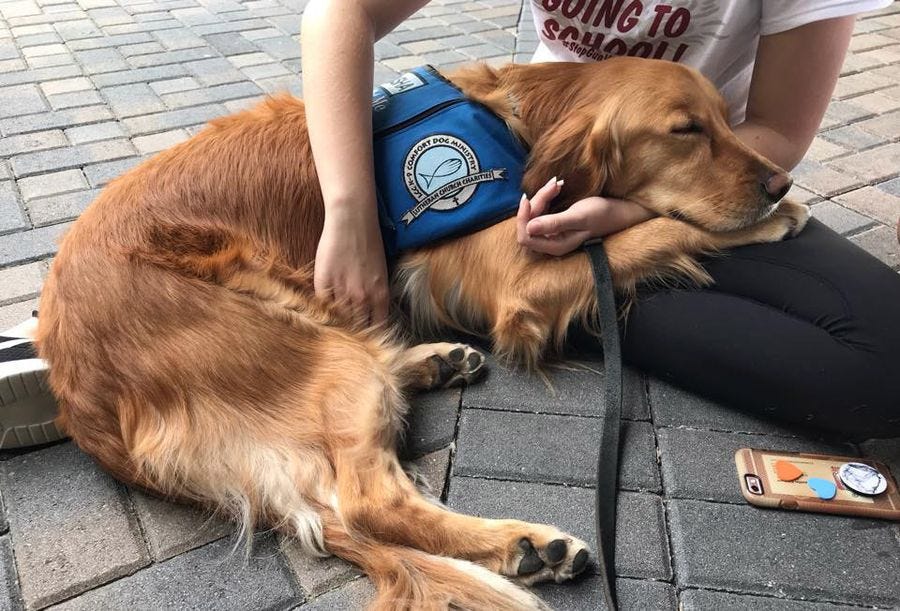 Have you ever dealt with a person at a help desk or in a position of service who not only did their basic job effectively, but also went out of their way to add to the experience by providing you with even more than you expected, without being asked? These encounters are worth their weight in gold and are more and more rare in this day and age, when so many people just want to make you go away and you see that attitude right off the bat. It is perhaps ironic that unselfish kindness is manifested more in the world of service animals these days, like the Comfort Dogs charity that we enthusiastically support through donations (one of those animals is shown in the photo comforting a child). These wonderful dogs (all purebred Golden Retrievers) bring peace and kindness to people suffering after a traumatic event, like a mass shooting or a devastating weather event. Their kindness and gentleness is innate, a gift from God in His beautiful creation. If these dogs can be so giving, how much more so can we as human believers give kindness?