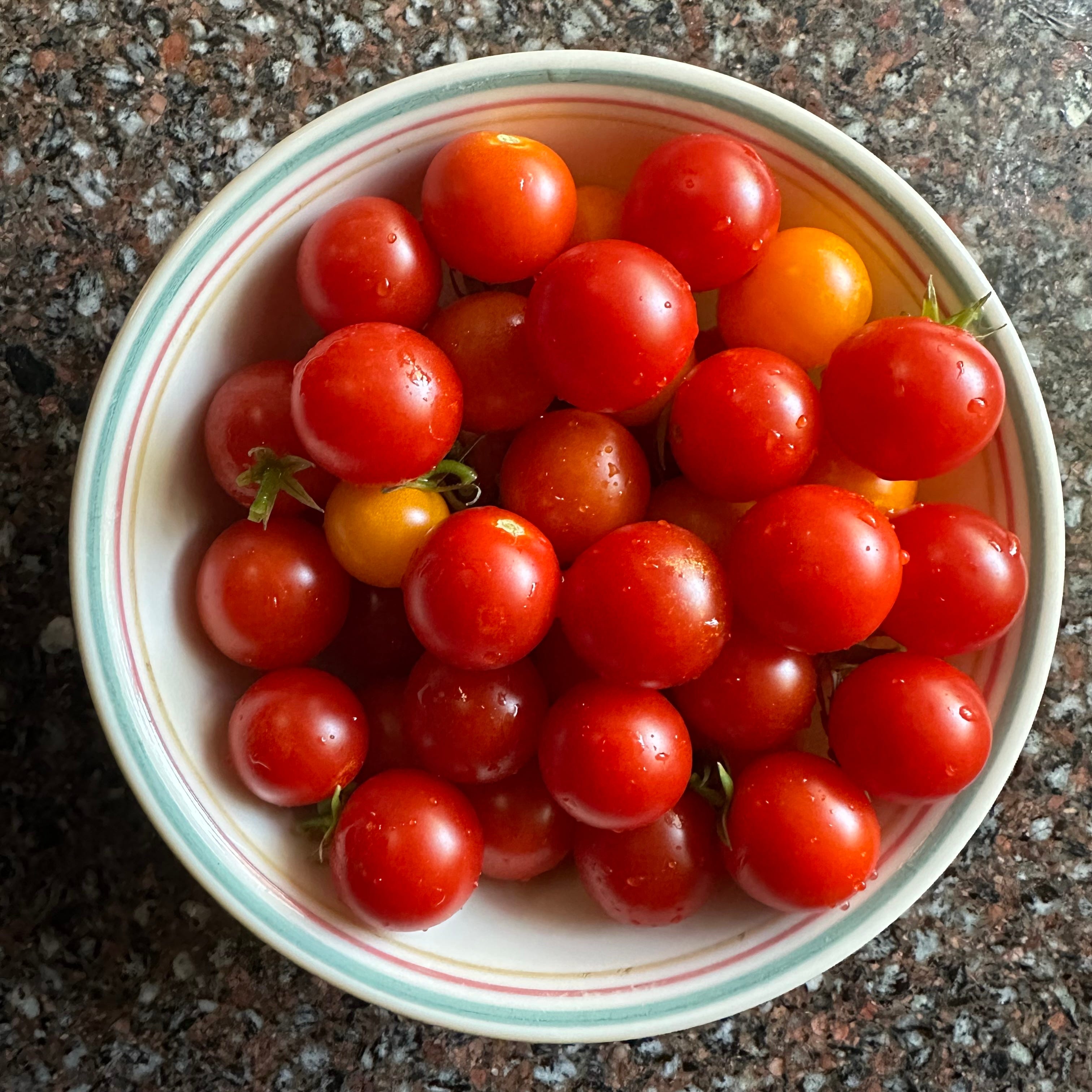 Tomatoes from our first harvest of the year. Photo © 2024, Steven Sande