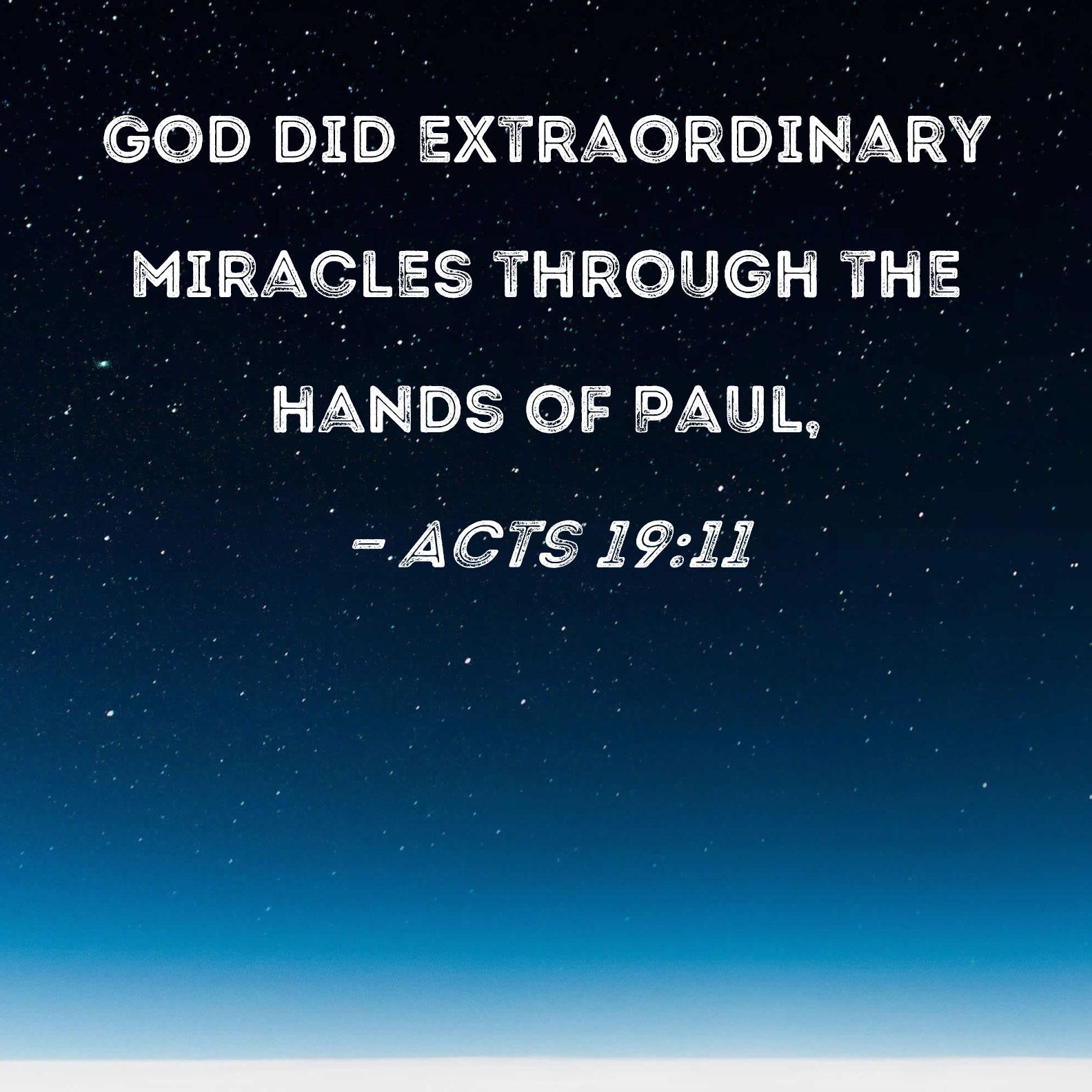 “God was performing extraordinary miracles by the hands of Paul, so that handkerchiefs or aprons were even carried from his body to the sick, and the diseases left them and the evil spirits went out.