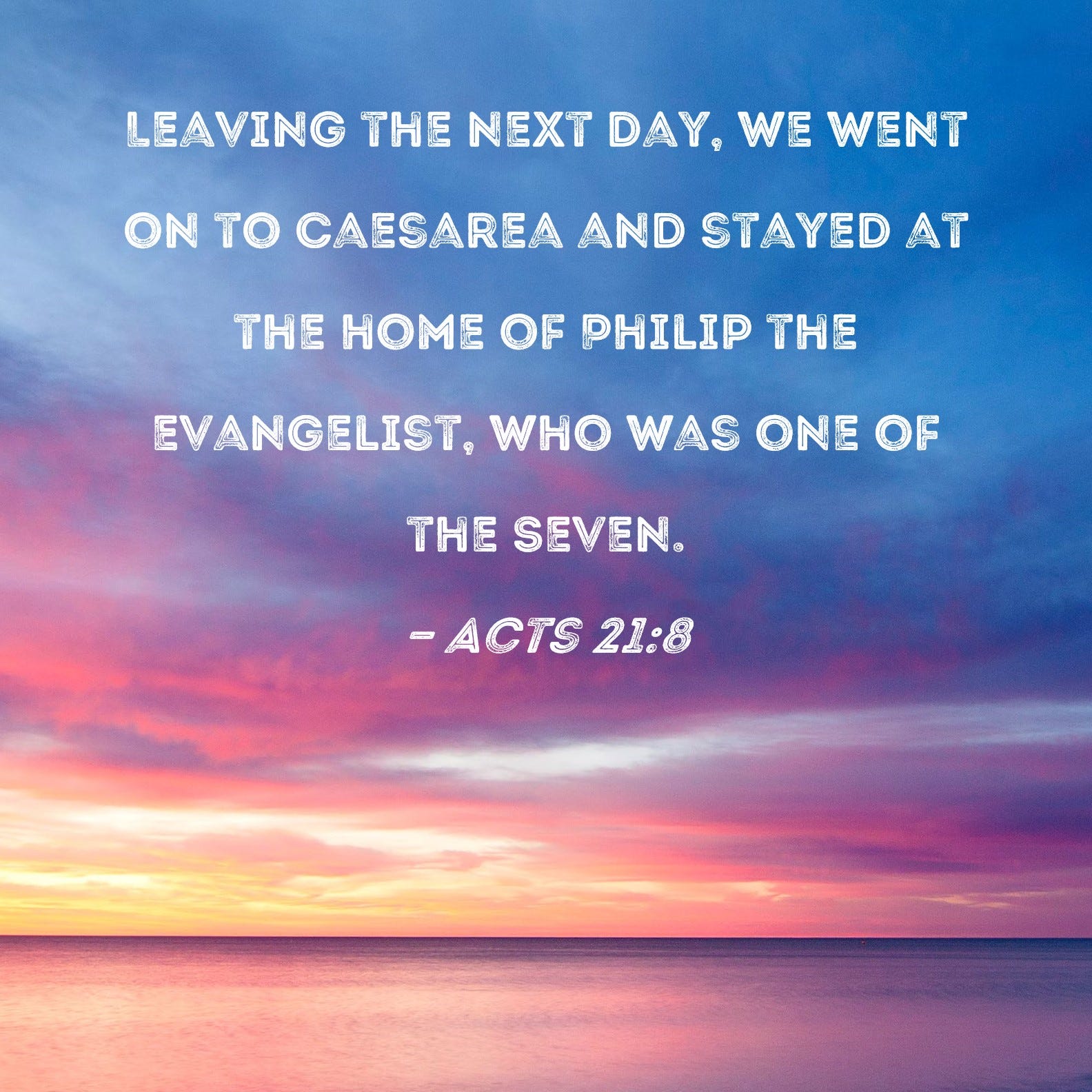 Philip the evangelist, who was one of the seven: Acts 8:40 tells us that after Philip’s work in bringing the Ethiopian eunuch to faith, he preached through the costal region and ended up in Caesarea. Many years later he was still there.