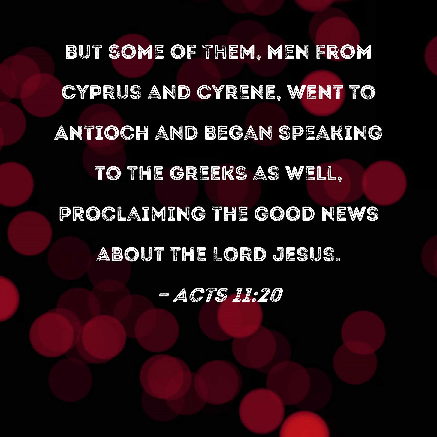 “So then those who were scattered because of the persecution that occurred in connection with Stephen made their way to Phoenicia and Cyprus and Antioch, speaking the word to no one except to Jews alone. But there were some of them, men of Cyprus and Cyrene, who came to Antioch and began speaking to the Greeks also, preaching the Lord Jesus. And the hand of the Lord was with them, and a large number who believed turned to the Lord.