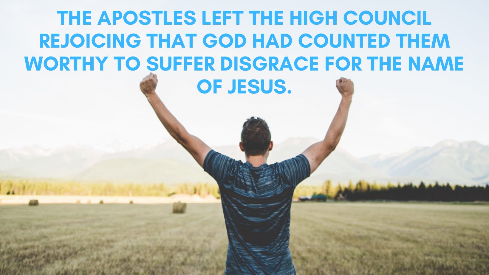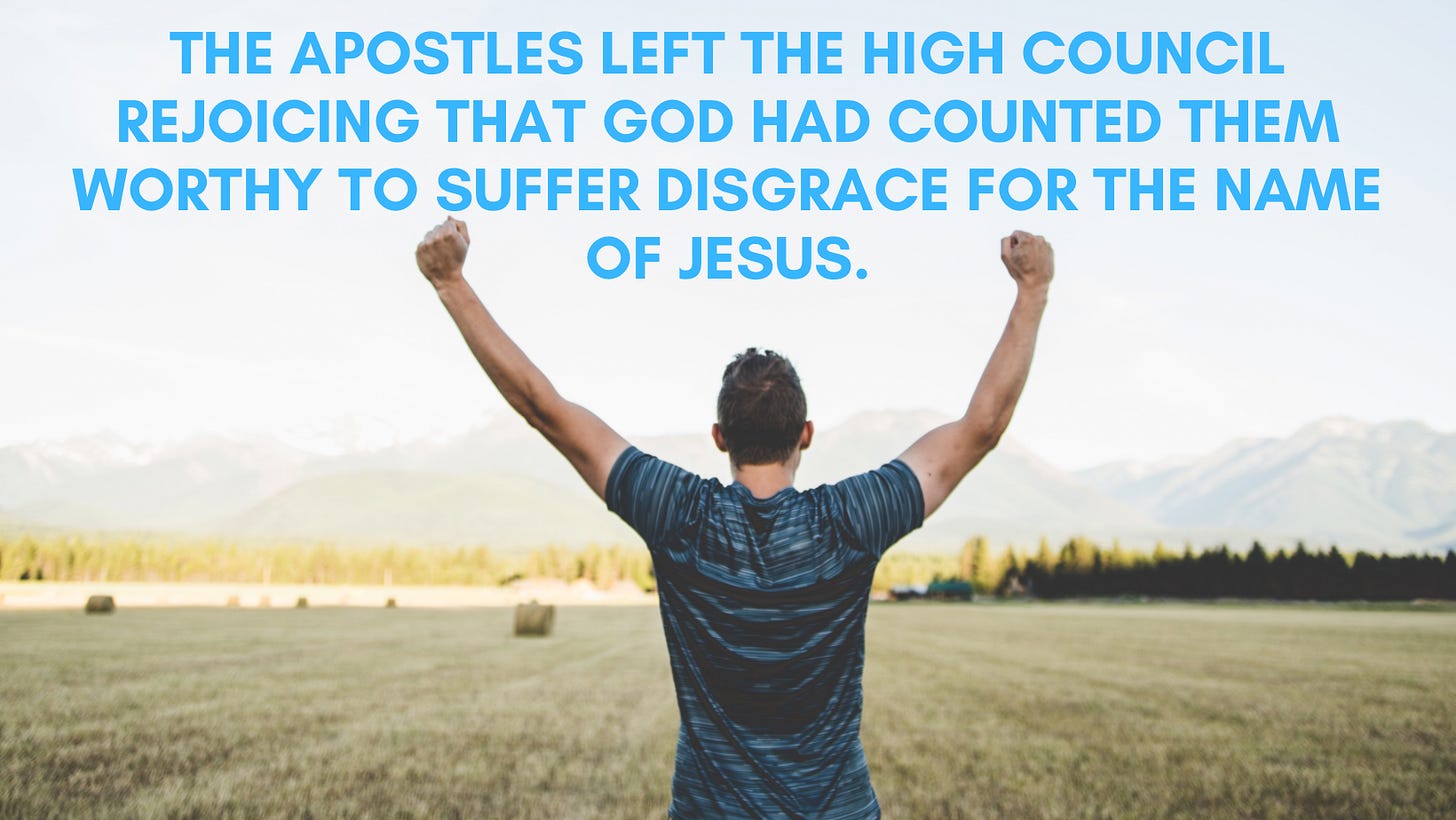 “The apostles left the high council rejoicing that God had counted them worthy to suffer disgrace for the name of Jesus.”