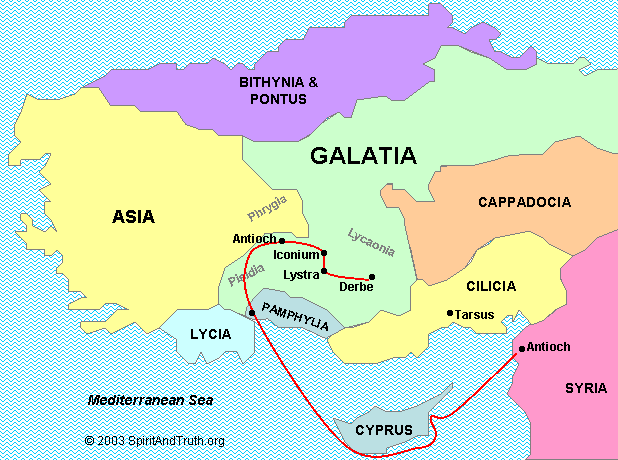 So who are the “Galatians”? The churches in Galatia were a combination of Jewish and Gentile believers, encouraged and visited by Paul and others in the missions documented in the book of Acts. Here is a map that was on Precept Austin showing the region in Asia Minor (present-day Türkiye) and some of the churches that are the likely targets of Paul’s letter, mostly in the southern region of the area: