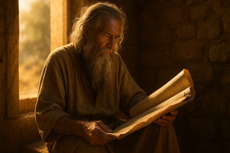 Daniel 9 begins with Daniel observing (or understanding, depending on the translation) in the books the number of years that were revealed to the prophet Jeremiah for the completion of the desolations of Jerusalem. This occurs in the first year of the reign of Darius, about twelve years after the vision in Daniel 8 and in approximately 539 to 538 BC according to Precept Austin. I love the image that Steve was able to get from ChatGPT AI. An elderly Daniel is by the window using the light to help him read scrolls of scripture!