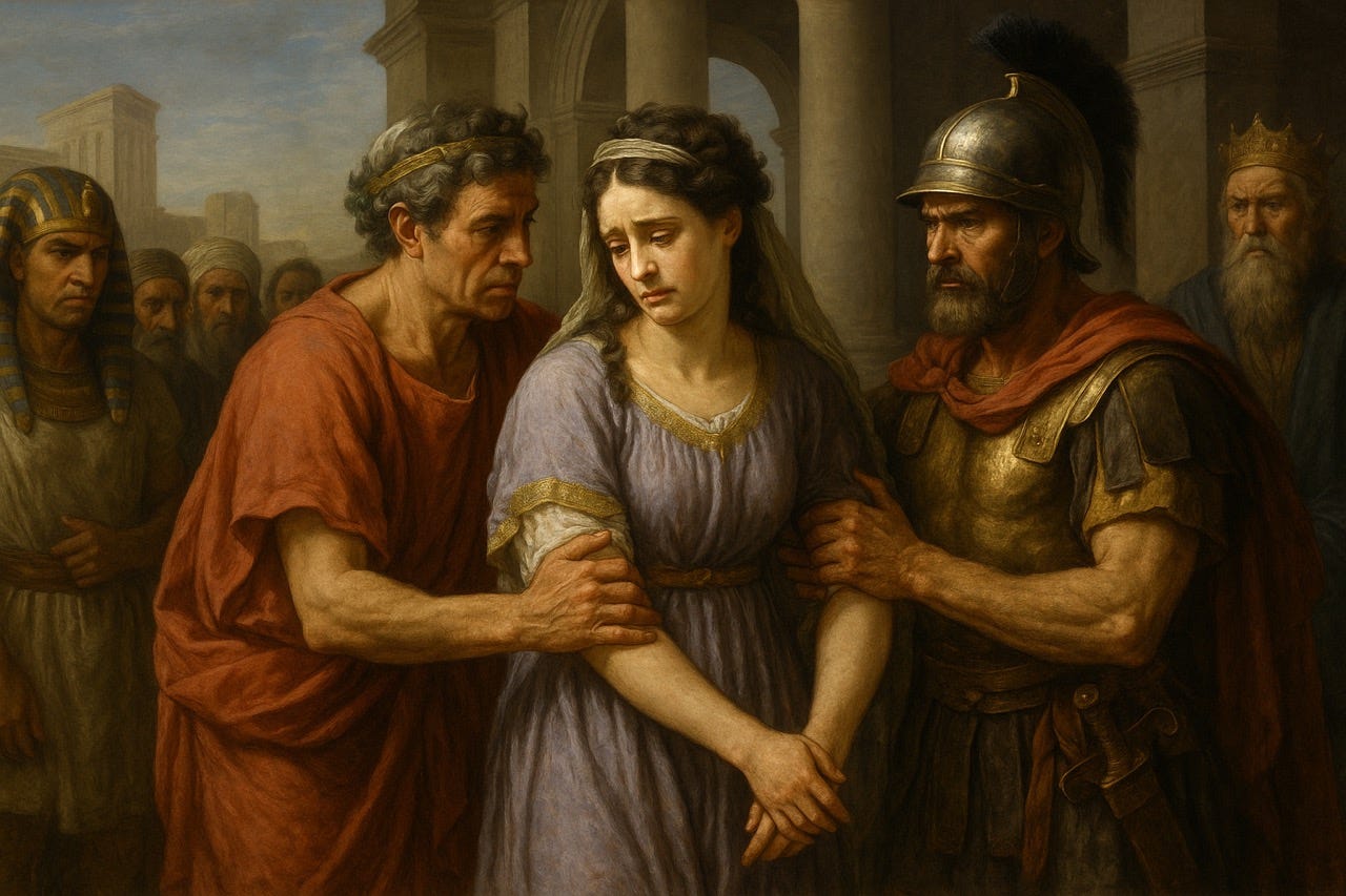 The prophecies from Daniel 11:5-35 focus on two of the four kings who divided up Greece. I am taking this in small bites to get an idea of the players involved in this prophecy. The AI image was created looking at the words in Daniel 11:5-6, which will be discussed further in this devotional (it is supposed to be Berenice).