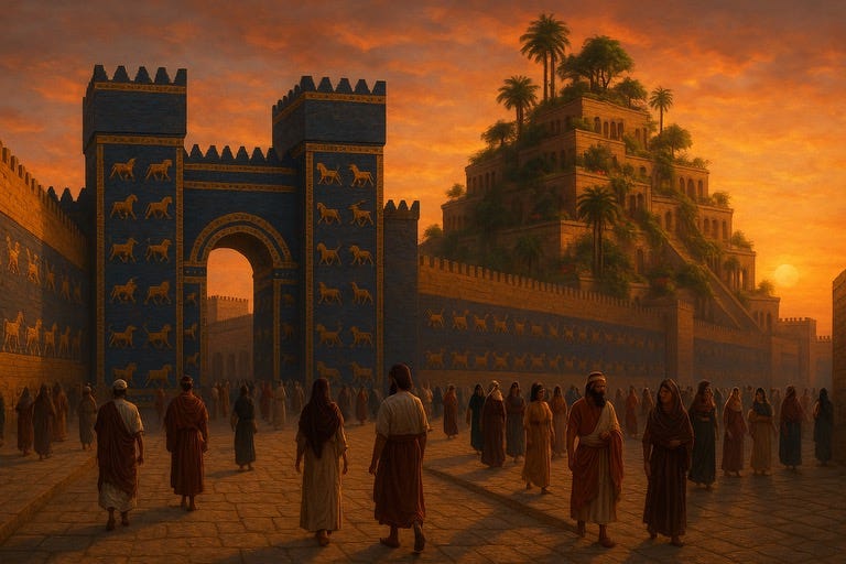It would have been interesting to see this place. Just for fun, I had Steve create an AI image of Babylon based on the descriptions in the commentary above: