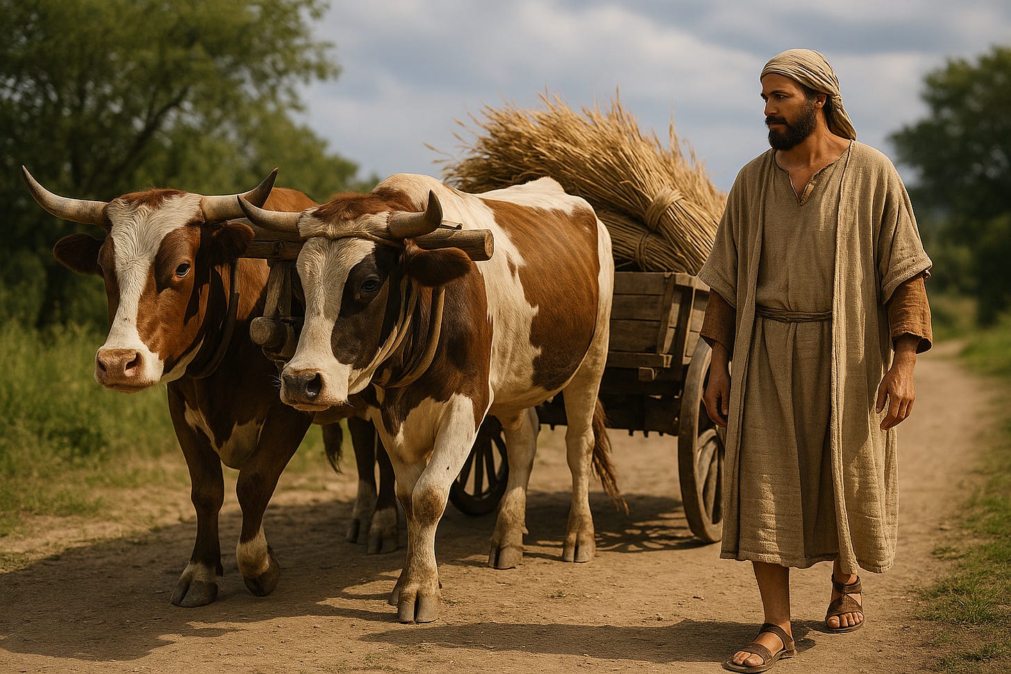 That’s what the image at the top of this devotional represents; two yoked oxen pulling a cart. It was a very common sight in Biblical times, and still is in many parts of the world. So what does a yoke of oxen have to do with the Bible?