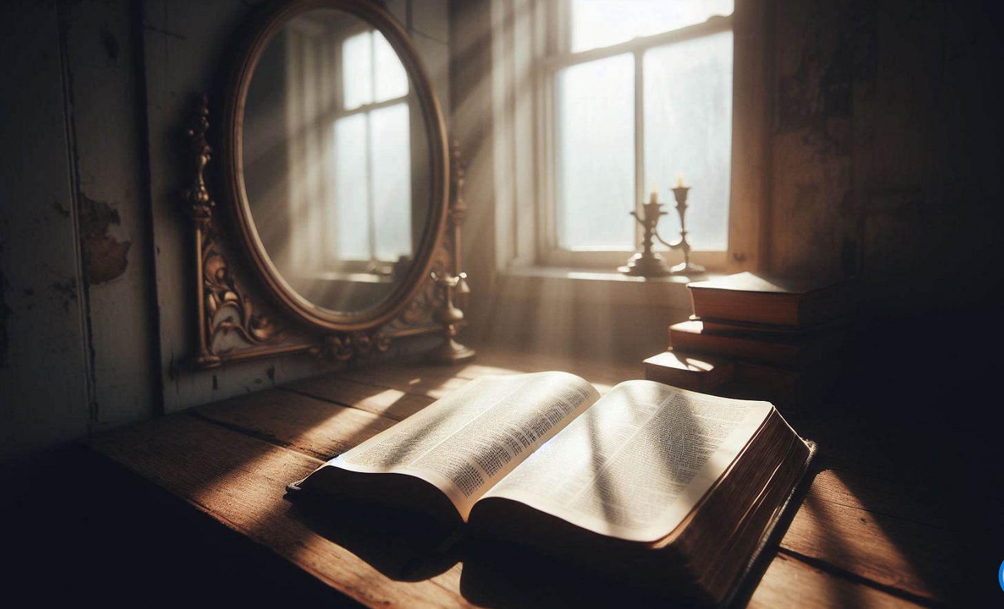In the next two verses, James uses the metaphor of a “hearer of the word” being like a man who looks at his reflection in a mirror. He may see himself in the mirror, but immediately forgets what he saw. Likewise, someone may read or even study the Bible, but unless they put the Word into action by living it, they’re simply a pale reflection of the Word.