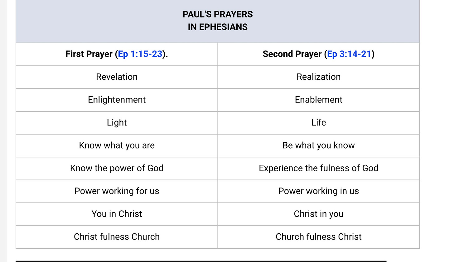 Paul now begins his second prayer in Ephesians. This passage is very rich in content, with a lot to unpack. As a comparison of the two prayers, here’s a table from Precept Austin comparing the content of the prayer in Ephesians 1 with this prayer: