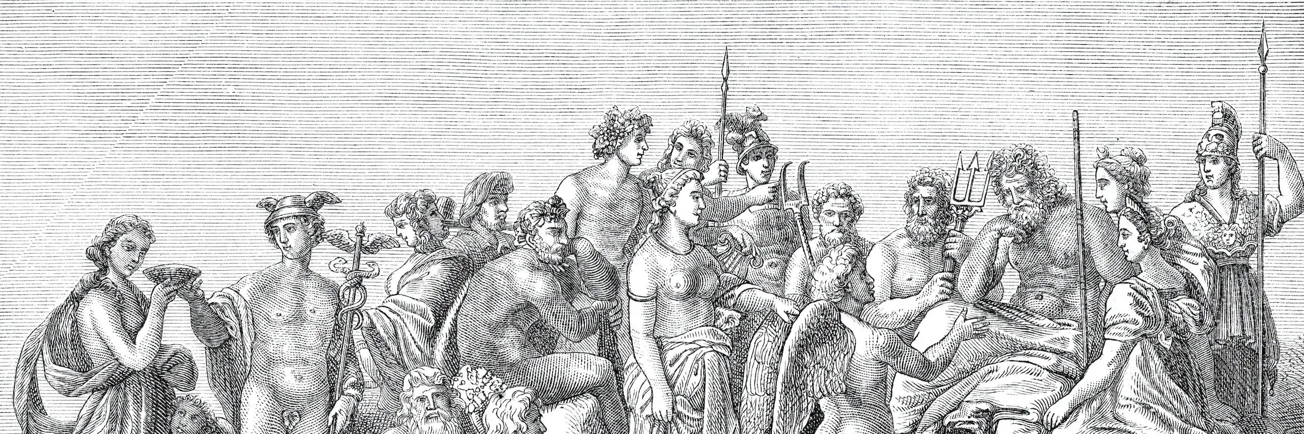 The gods of the Greek pantheon, all of whom had numerous shrines and temples dedicated to them in Athens. Image from Mythopedia.