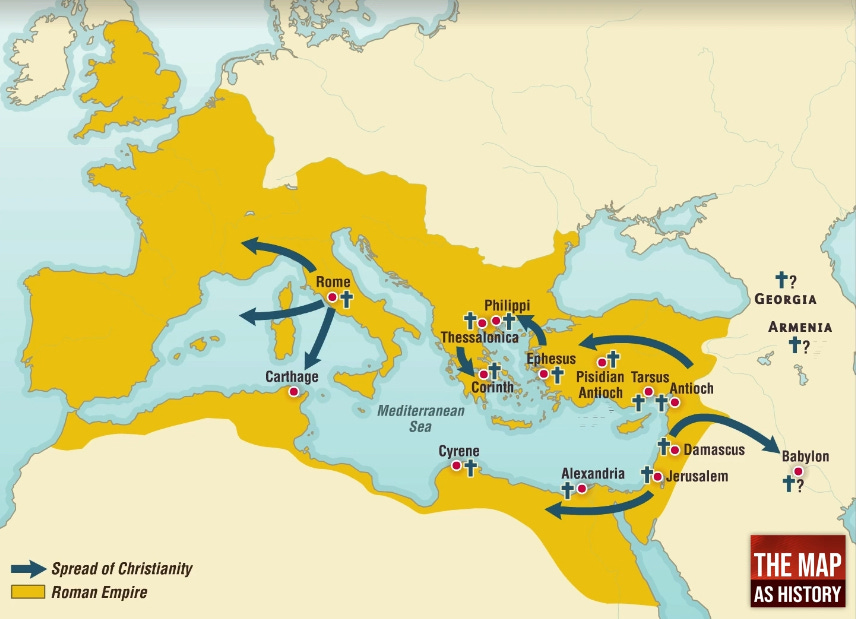 Image from an animated map depicting the spread of Christianity in the 1st Century AD: The Map As History