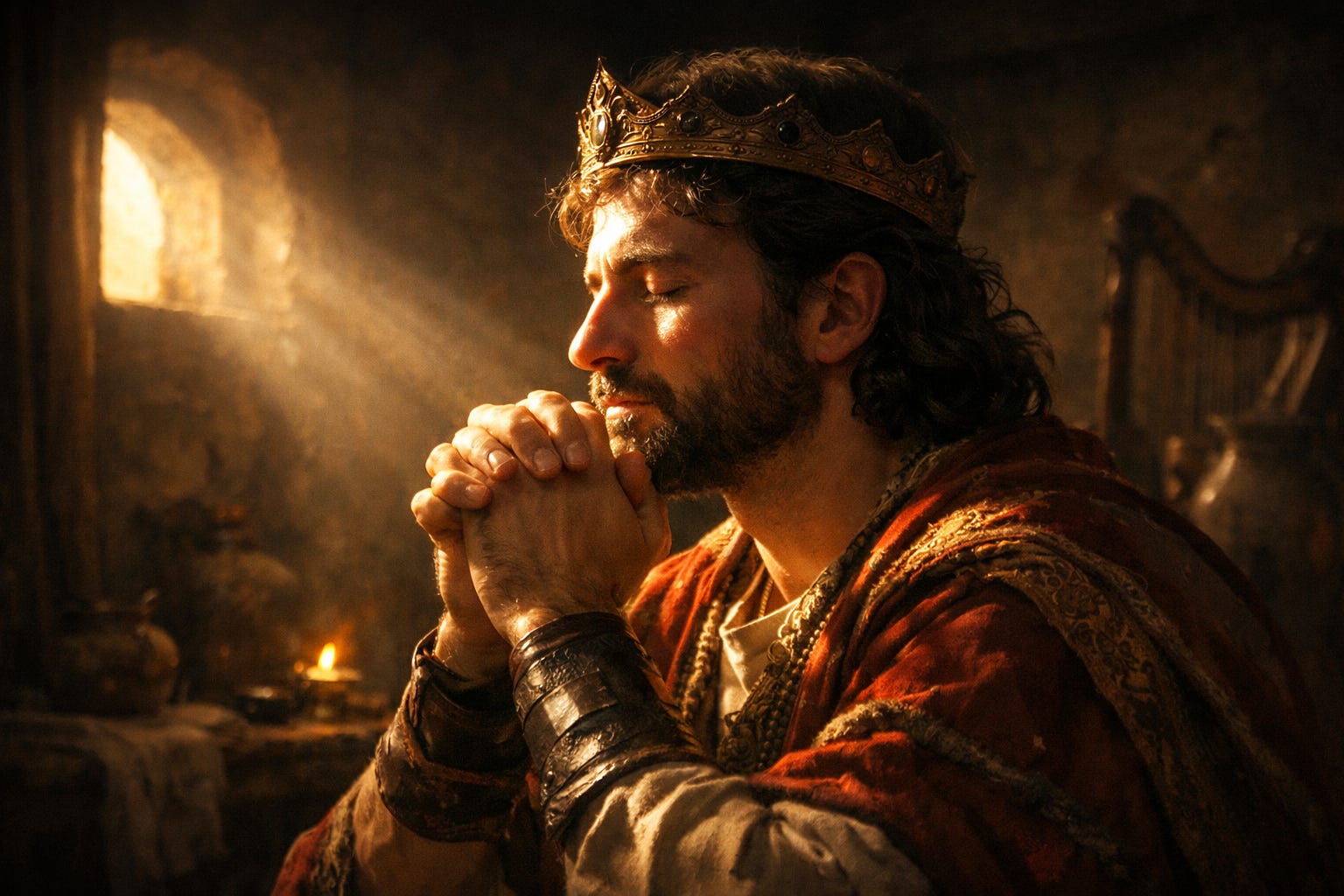 It’s the next phrase in verse 16 that I called upon to have my AI buddy create today’s image. The sun (or Son) shining on the face of King David as he prays for God’s presence and favor is a visual representation of the “priestly blessing” found in Numbers 6:24-26: