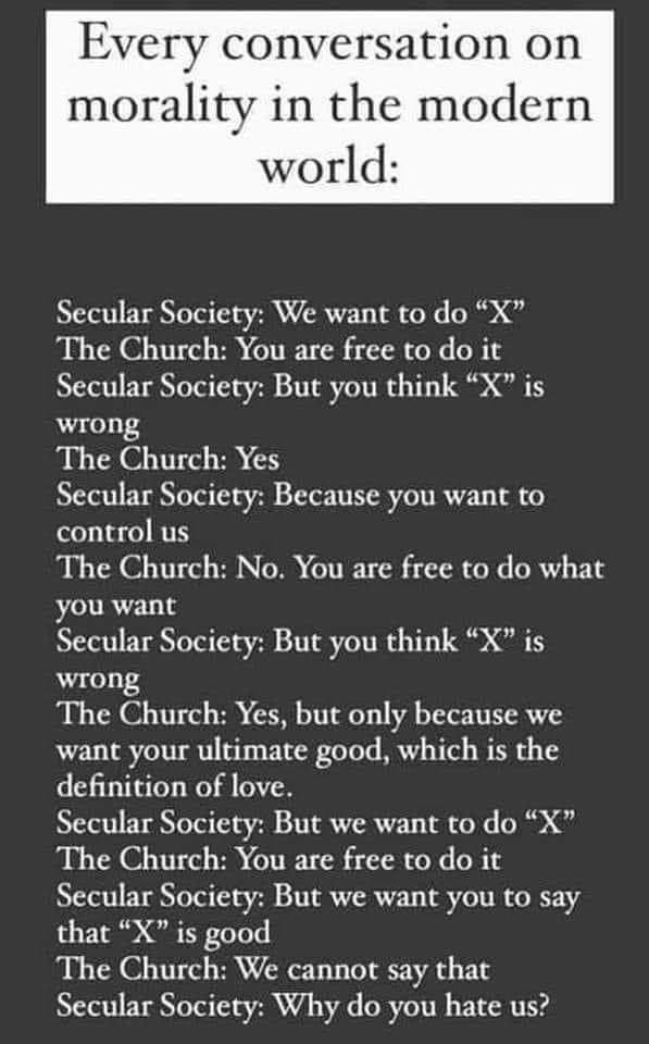 There’s a meme that demonstrates the common argument that goes on between certain members of our secular world and Christians. Thanks to Barb for remembering this one and digging through Facebook to find it!