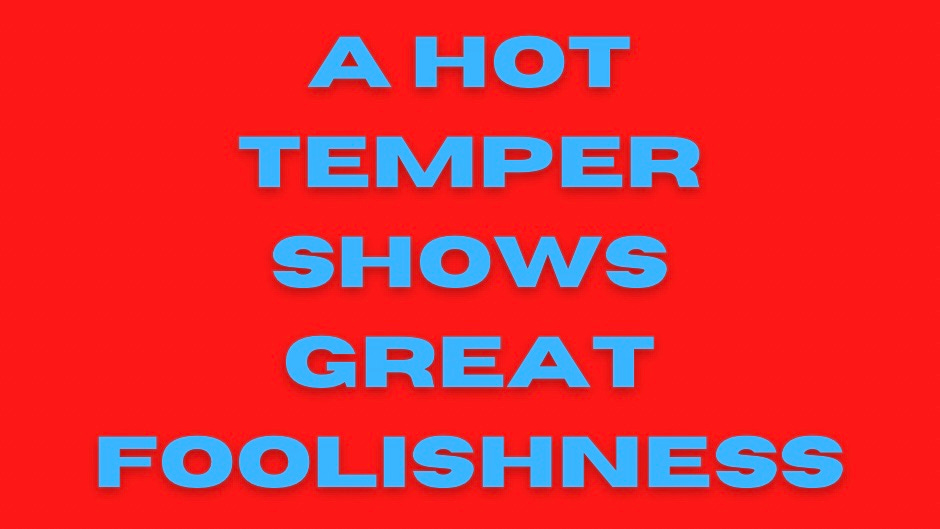 “People with understanding control their anger; a hot temper shows great foolishness.”