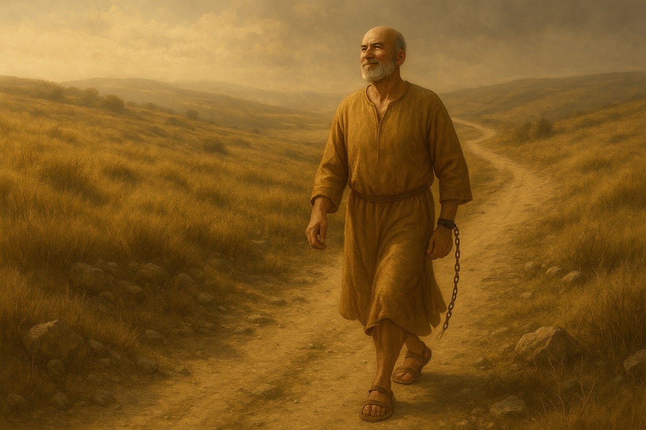 Boy, do I love this AI image of Paul that Steve requested from ChatGPT! Paul is walking towards a goal with joy on his face and his chains have been cut. He is “pressing on” so that he may lay hold of the prize of the upward call of God in Christ Jesus. Let’s do some word studies!