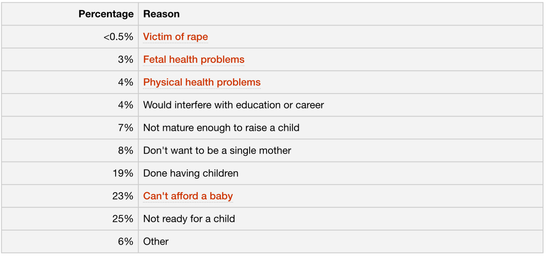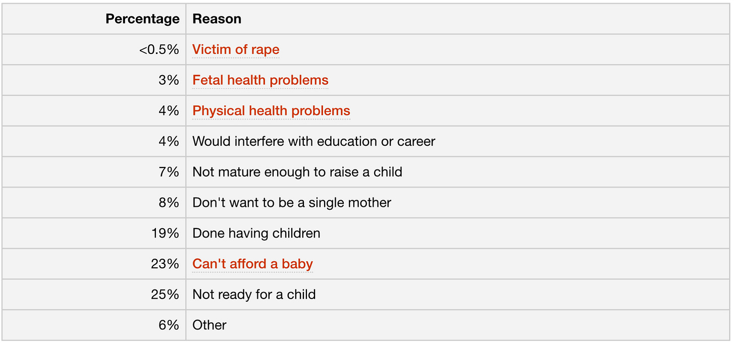Based on extrapolated 2004 survey results by the Guttmacher Institute, these are the reasons for an abortion: