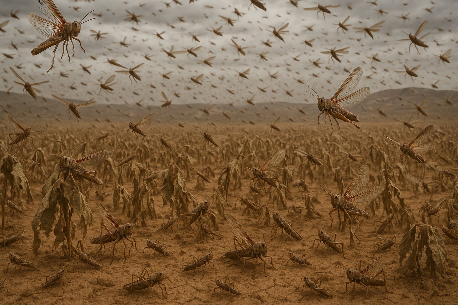 A plague of locusts. This image was created using DALL·E, OpenAI’s legacy image generation model.