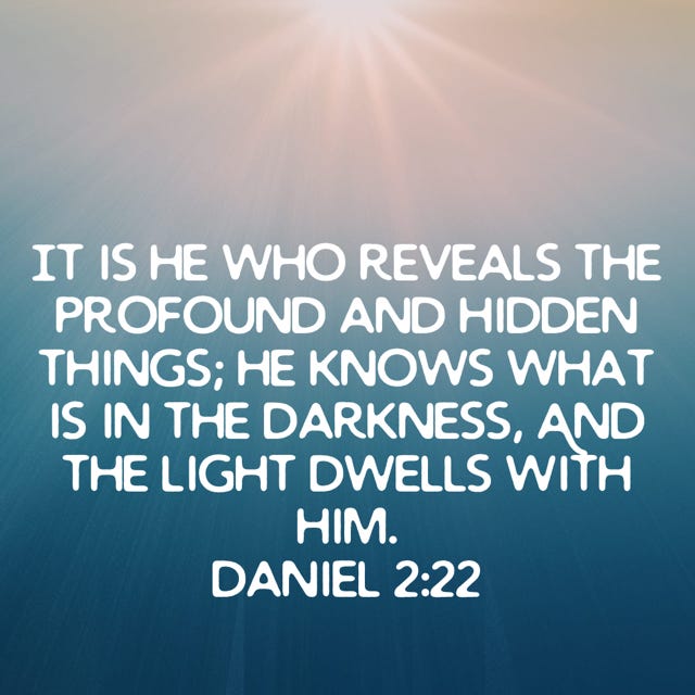 Daniel 2:22 When we pray, God sheds a bright light on the profound and hidden things in our lives
