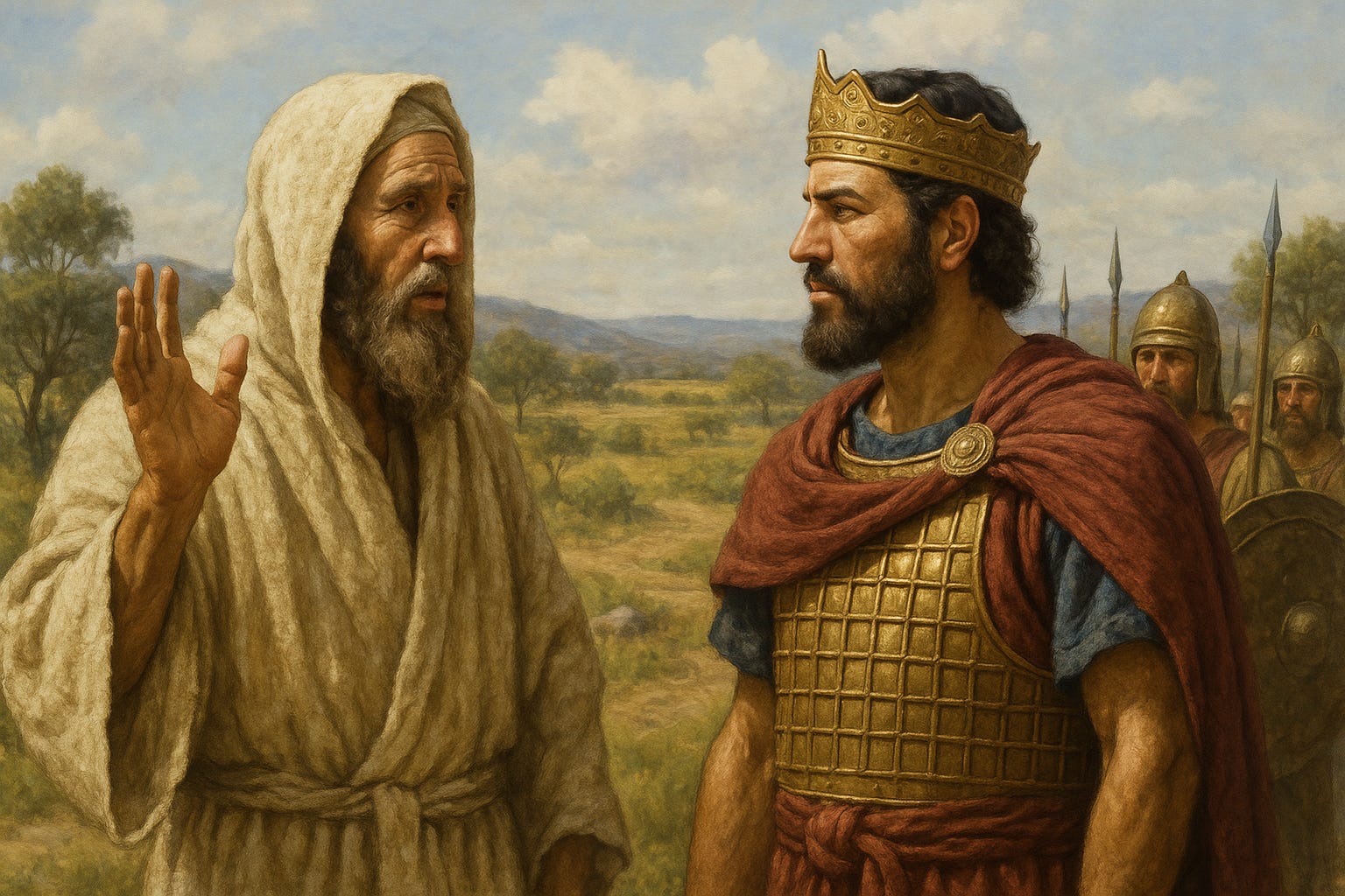 The minor prophet Azariah speaking with King Asa. Image generated by ChatGPT (OpenAI) using the DALL·E model.
