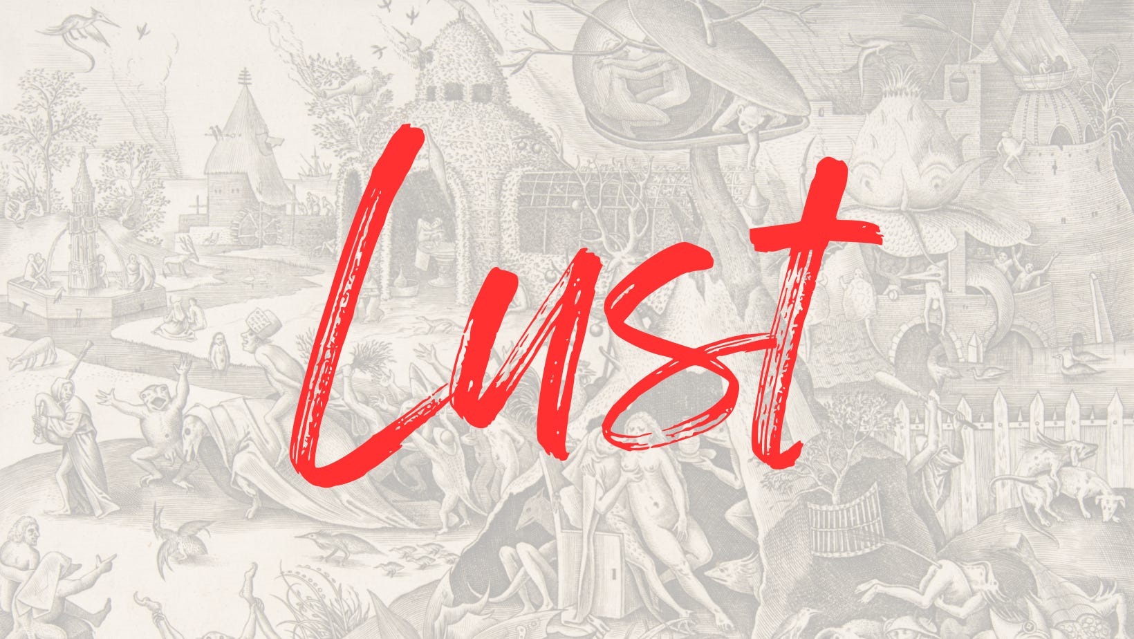 Background art: Lust (Luxuria) from The Seven Deadly Sins, print, Pieter van der Heyden, after Pieter Bruegel the Elder. From the collection of the Metropolitan Museum of Art via Wikimedia Commons.