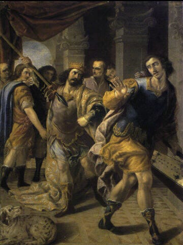 David before Saul, Painting, Oil on Canvas. Jusepe Leonardo, ca. 1600s. Via Wikimedia.