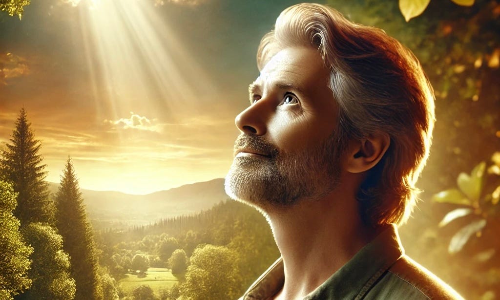 Image of a man looking reverently to God, created by ChatGPT AI.