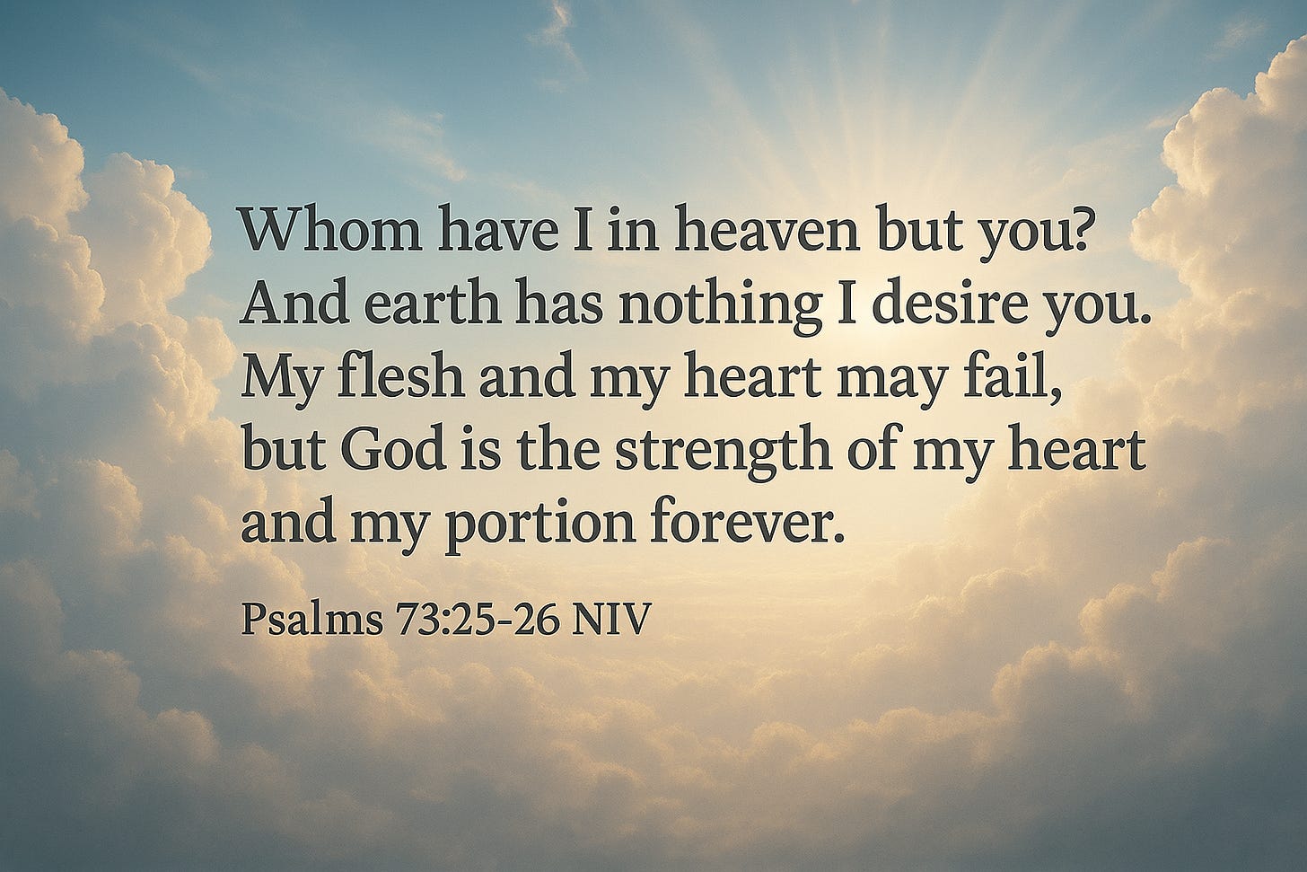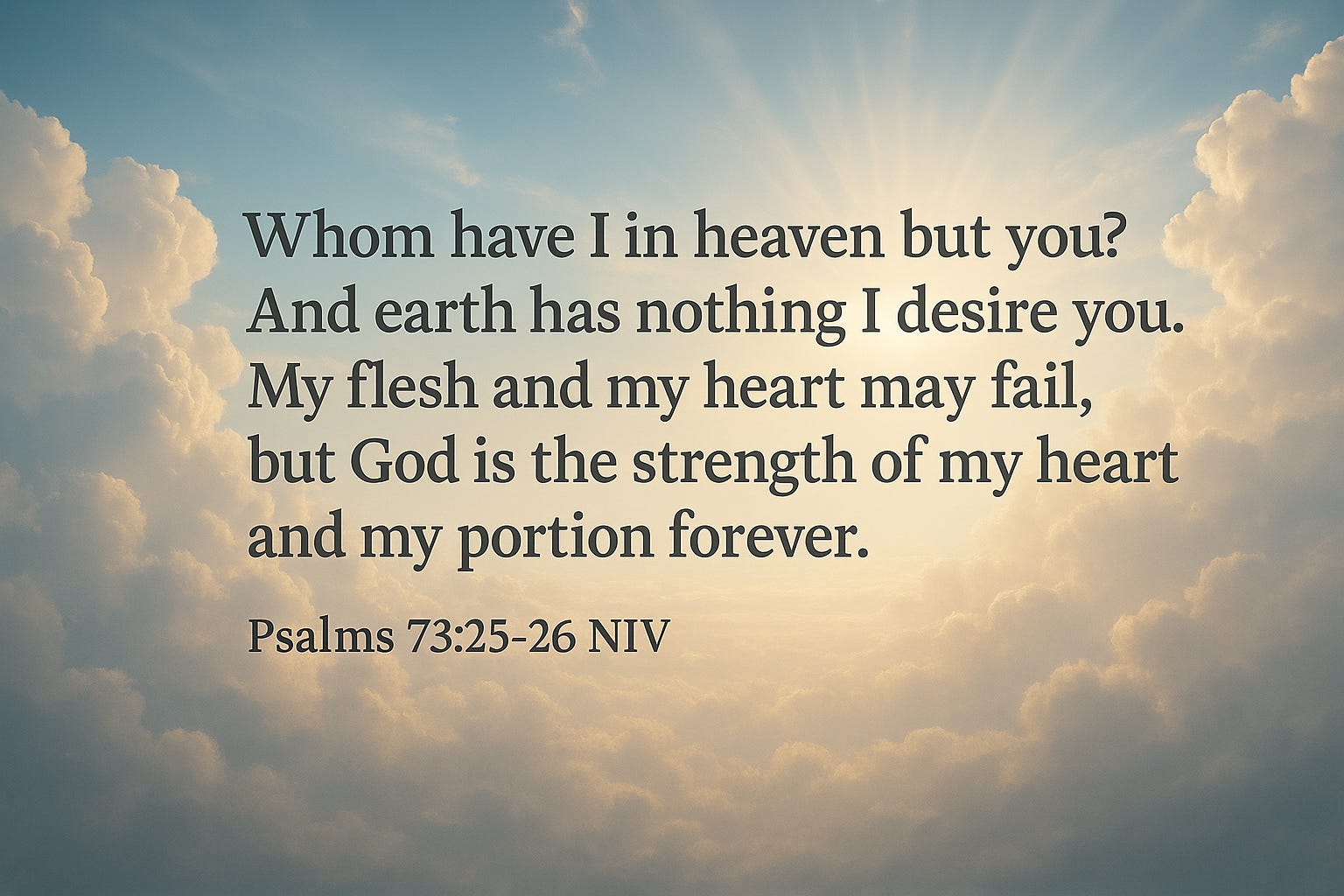 “Whom have I in heaven but you? And earth has nothing I desire besides you. My flesh and my heart may fail, but God is the strength of my heart and my portion forever.”