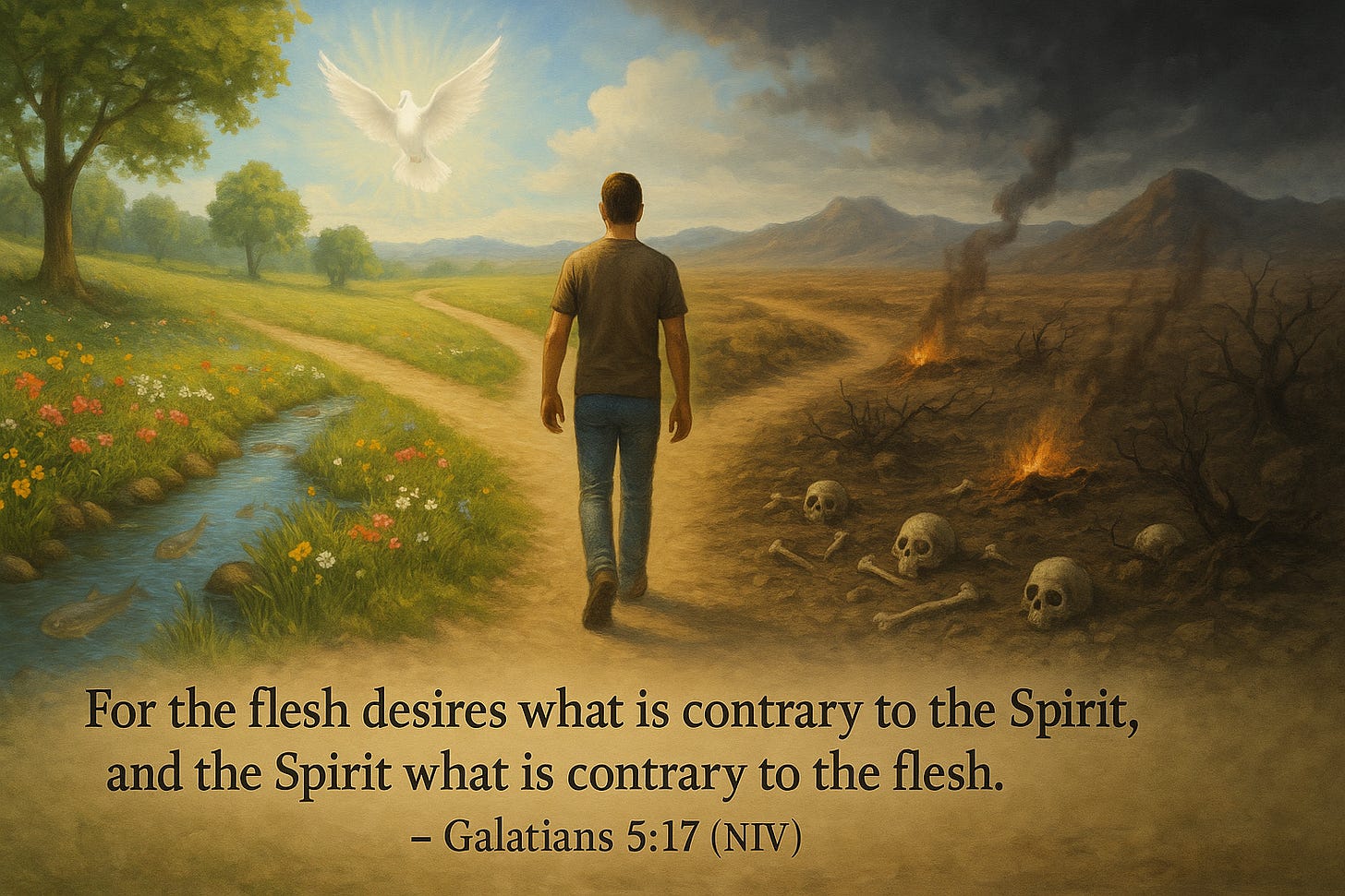 “For the flesh desires what is contrary to the Spirit, and the Spirit what is contrary to the flesh. They are in conflict with each other, so that you are not to do whatever you want.”